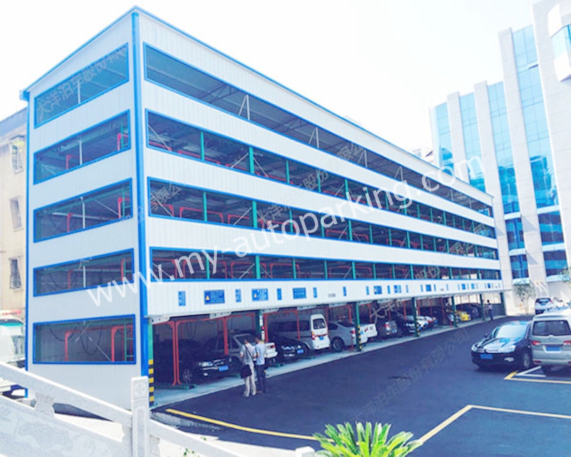 The equipment is designed with multi-levels and multi-columns smart puzzle parking system. It is designed with several empty spaces for exchanging spaces for other vehicles in each PLC unit. All spaces can move vertically or horizontally by the drive of hydraulic except the space in the top level. The top level cars can only move vertically. When a car needs to park or release, all spaces under this car will move automatically to form a free channel under this space, in this case, the space will go up and down freely. When it reaches the ground, the car will be driven out and in easily.